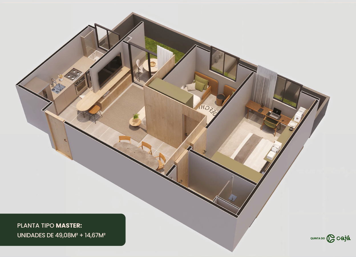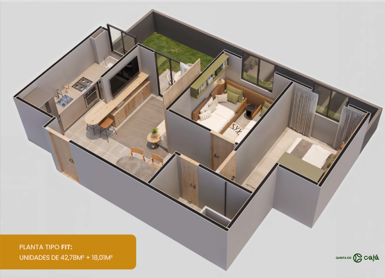 Localizado em um dos bairros que mais cresce em Caruaru, o Quinta do Cajá é um condomínio inteligente que une economia, lazer e segurança. Com o maior apartamento da categoria, você pode escolher entre as 3 opções de plantas a que melhor encaixa na sua rotina. A super área de lazer conta com diversas opções de diversão das crianças aos pets, e tudo isso com a menor taxa condominial, por um preço que cabe no seu bolso.